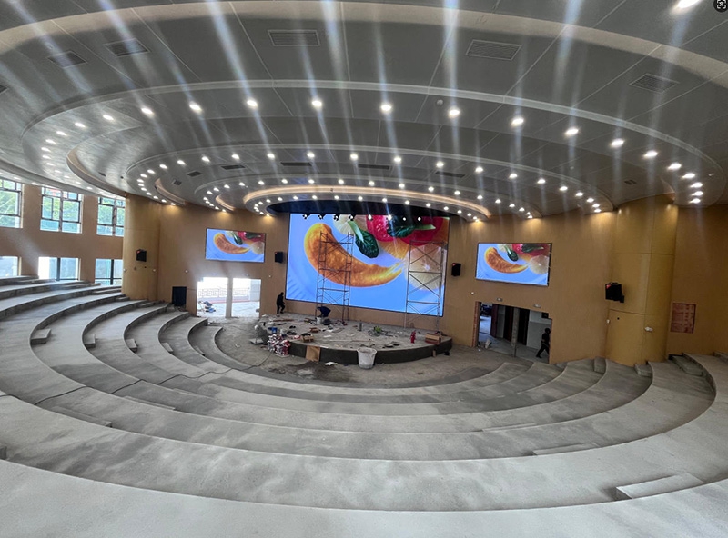 主屏幕:采用 P2.5 小间距全彩 LED 显示屏,尺寸适配报告厅舞台核心区域,分辨率达 4K 级别,具备高对比度、广视角特性,确保后排观众也能清晰观看画面细节。